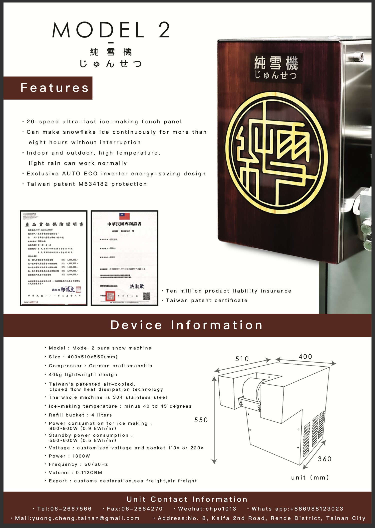 雪花氷機 モデル2 は、純雪国際のスタンダードモデルとして、カフェ、小規模レストラン、フードトラックなど、安定した日次出力を求める店舗に最適です。20段階の食感コントロール、特許取得済みECO節電インバーター技術、そして8時間以上の連続稼働により、エネルギーコストを抑えながら一貫したパフォーマンスを実現。台湾特許 M634182 に裏打ちされた耐久性と信頼性を兼ね備え、長期的な安定運営を目指すビジネスに最適な選択肢です。